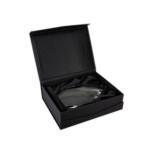 Deluxe Trofeo grande de Cristal modelo "Black Diamond" con base negra. Presentación en caja de cartón forrado negro.