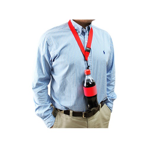 Lanyard de polyester liso de 2.5 cm de ancho para sublimación, con cordón porta-botella con pretina.